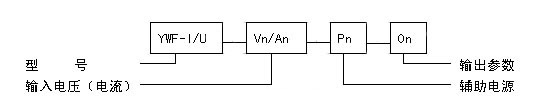 注: 1、YWF、YWL系列交流電流變送器輸入線從變送器外殼設置的穿孔穿過,不分極性。